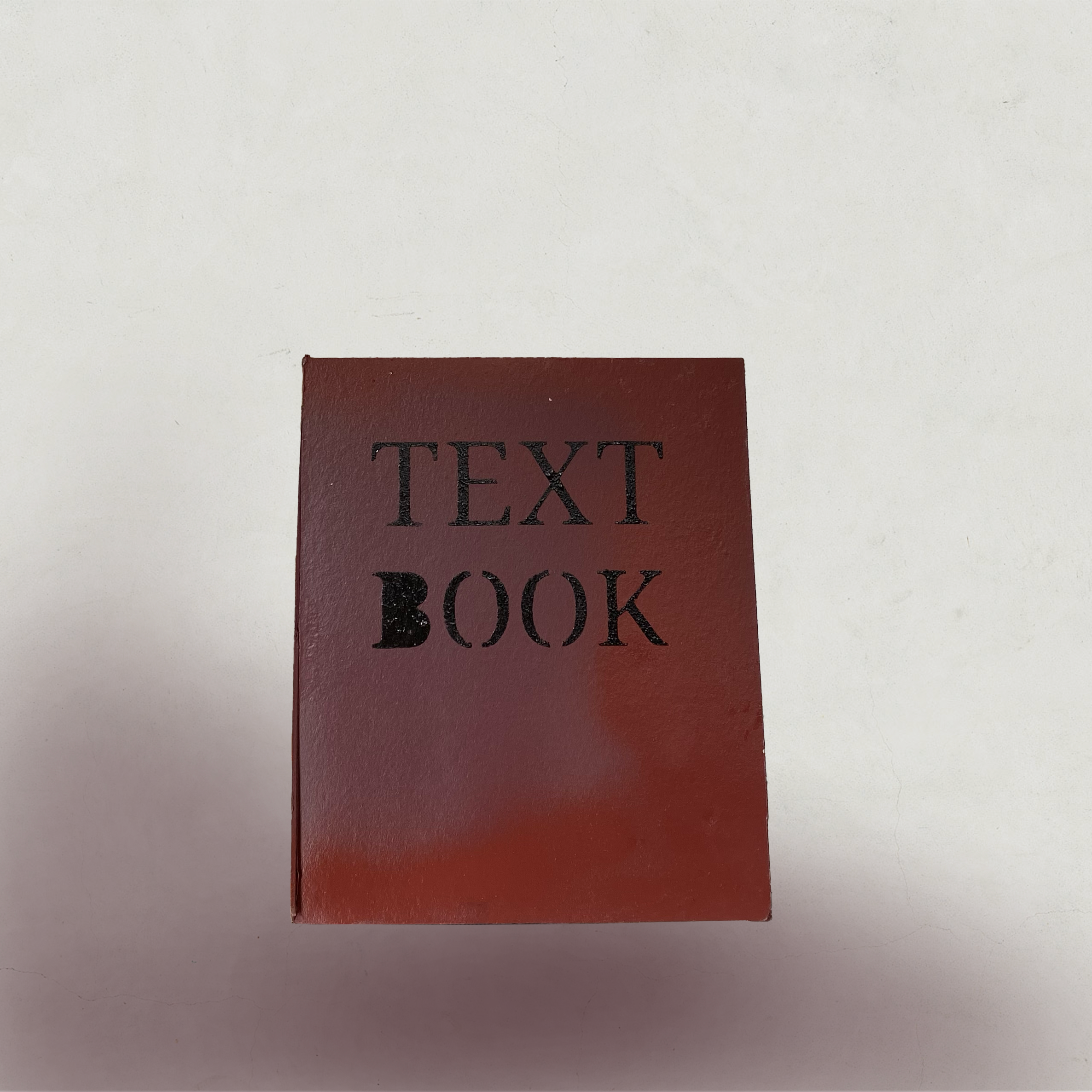 Using Tinkercad, I designed a simple stencil that said ‘Text Book’, as well as an extraordinarily simple gluuing jig that helped glue parts of the fake books at 90 degree angles. These designs were then 3d printed on my printer and I published the gluuing jig file on Printables so that other people may use it as they need.
