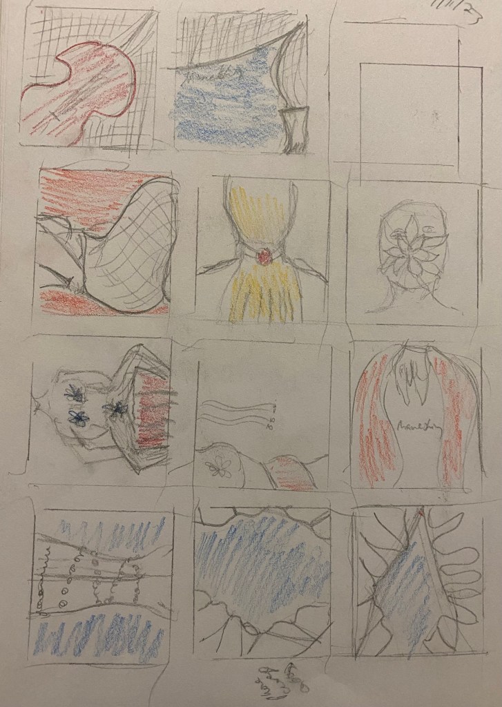 This project required making 2 variations of a record cover for a band that I liked, with the intention of analysing them at the end. I chose Måneskin’s latest album, and used the name of the first song, Valentine, on the album as the title. I played with 2 aspects of the term, valentine. The first being the heady rush of lust experienced in a club, and the second being the more comfortable long term relationship but still keeping things fun with sexy underwear kind of deal that I figured would be a fun contrast to the actual music itself, which leans more the first definition. I created an seemingly endless number of thumbnails in order to get the feel and right balance of sex + humour, as the band doesn’t appear to take themselves too seriously.