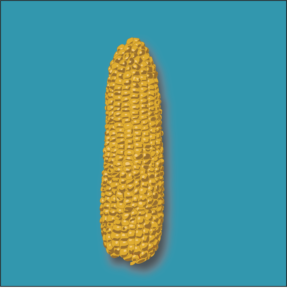 To keep with the animated feel of the show, and to stay somewhat true to the packaging in the game, a detailed image of a corn cob was created in Adobe Illustrator.