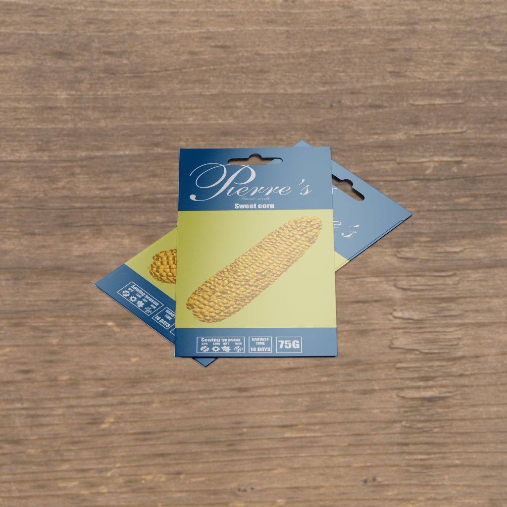 This packaging design project was created around the idea of ‘what if the popular farming game Stardew Valley was made into an animated tv show?’. In the game, the player character (PC) buys their seeds for their farm from Pierre’s General Store every season. Pierre, the shop owner often tells the PC that his seeds are the finest in the area, so it makes sense that this would be reflected on the seed packets themselves.